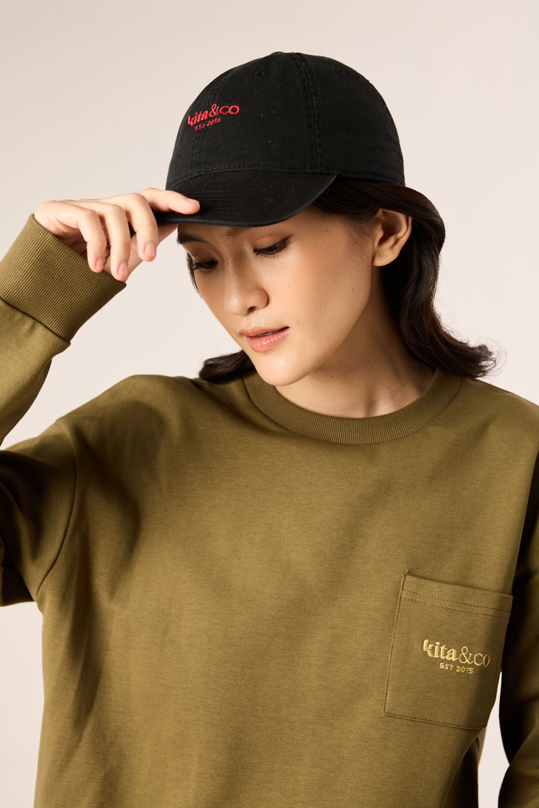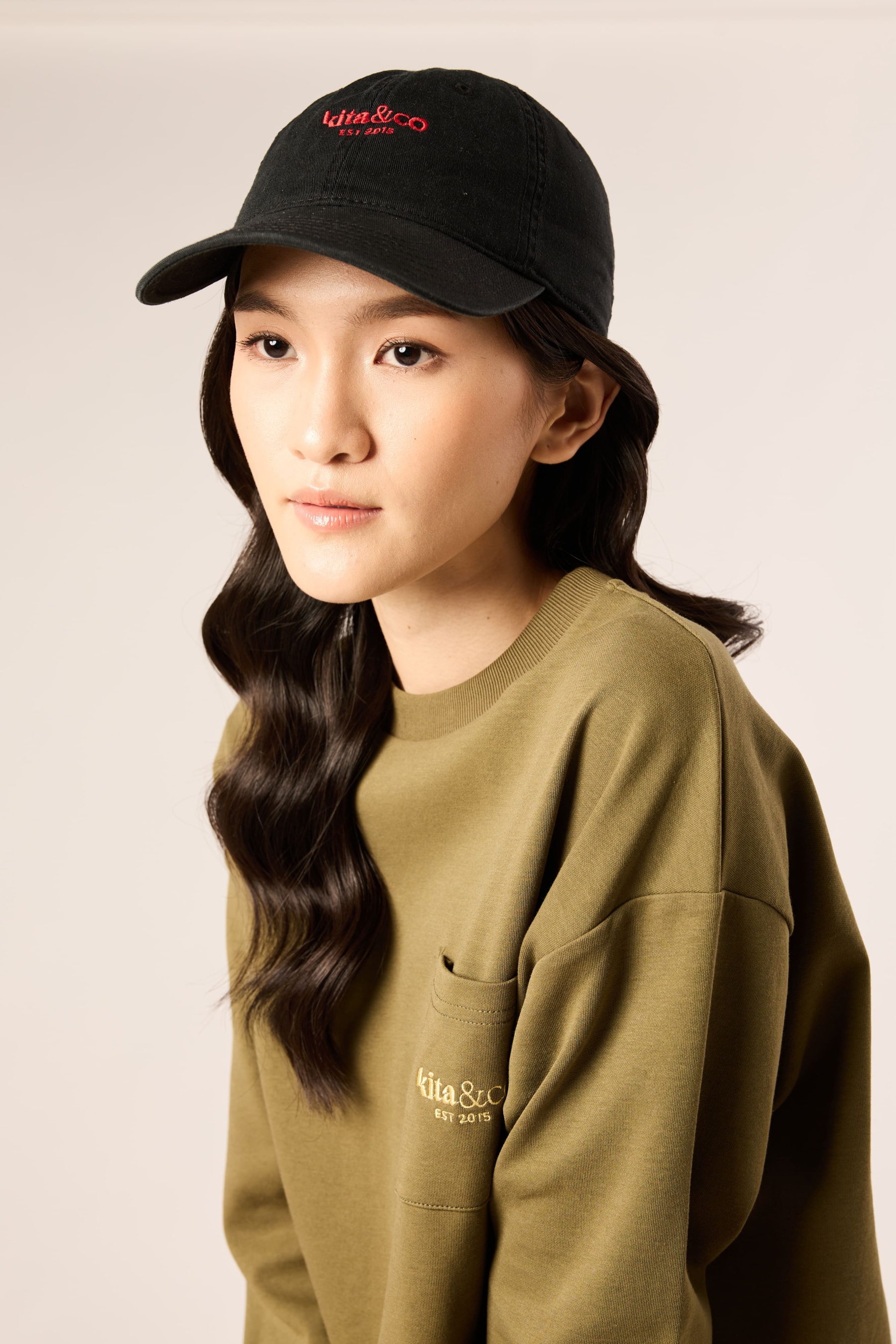 Cotton baseball cap embroidered with "'Kita&Co Est 2015" logo. Available in Black and newly added colours, Coffee Brown and Bubblegum Pink.