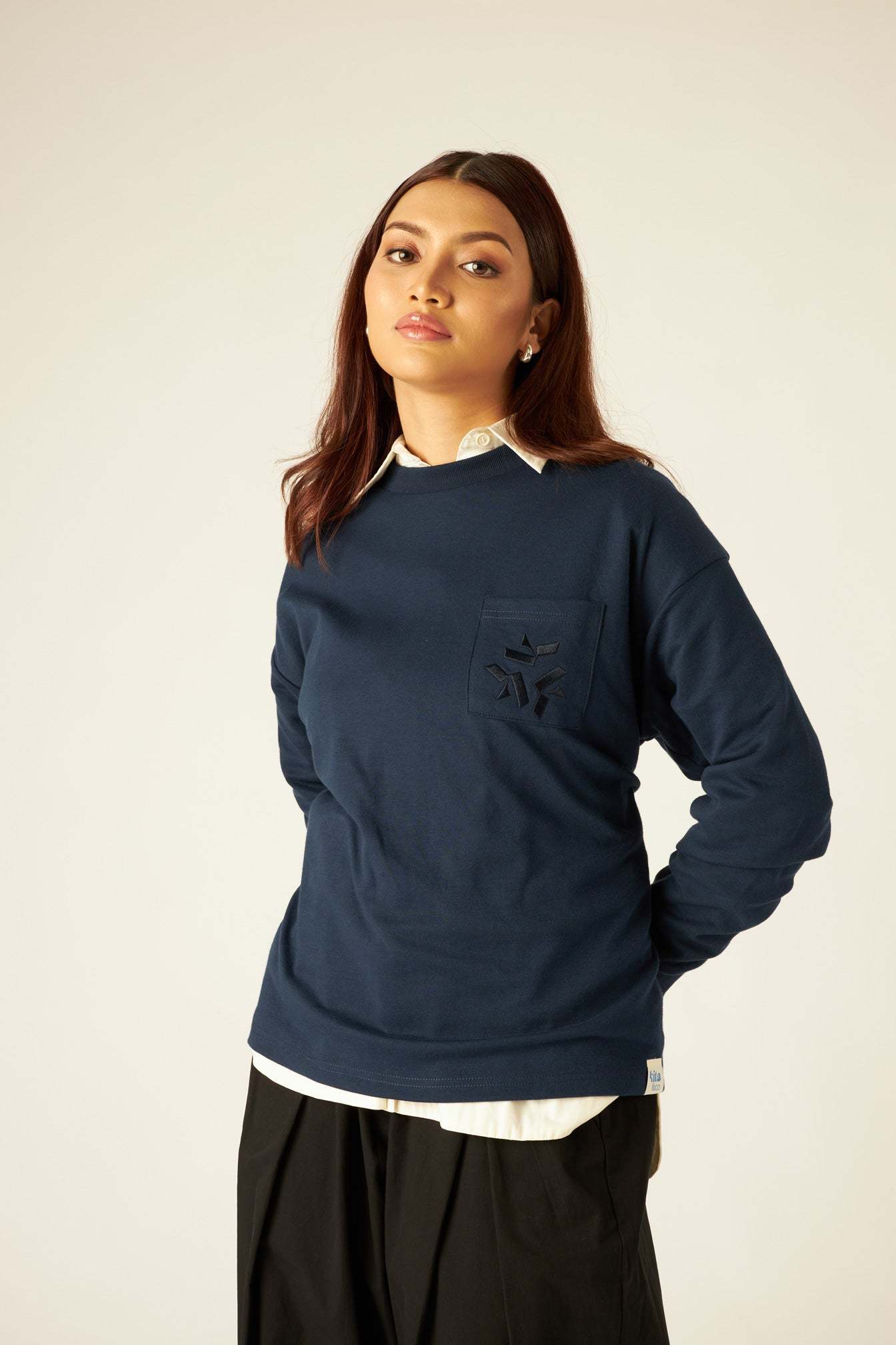 Kita&Co crew neck jumper made with 100% cotton. Available in Hot Pink, Navy and Brown.